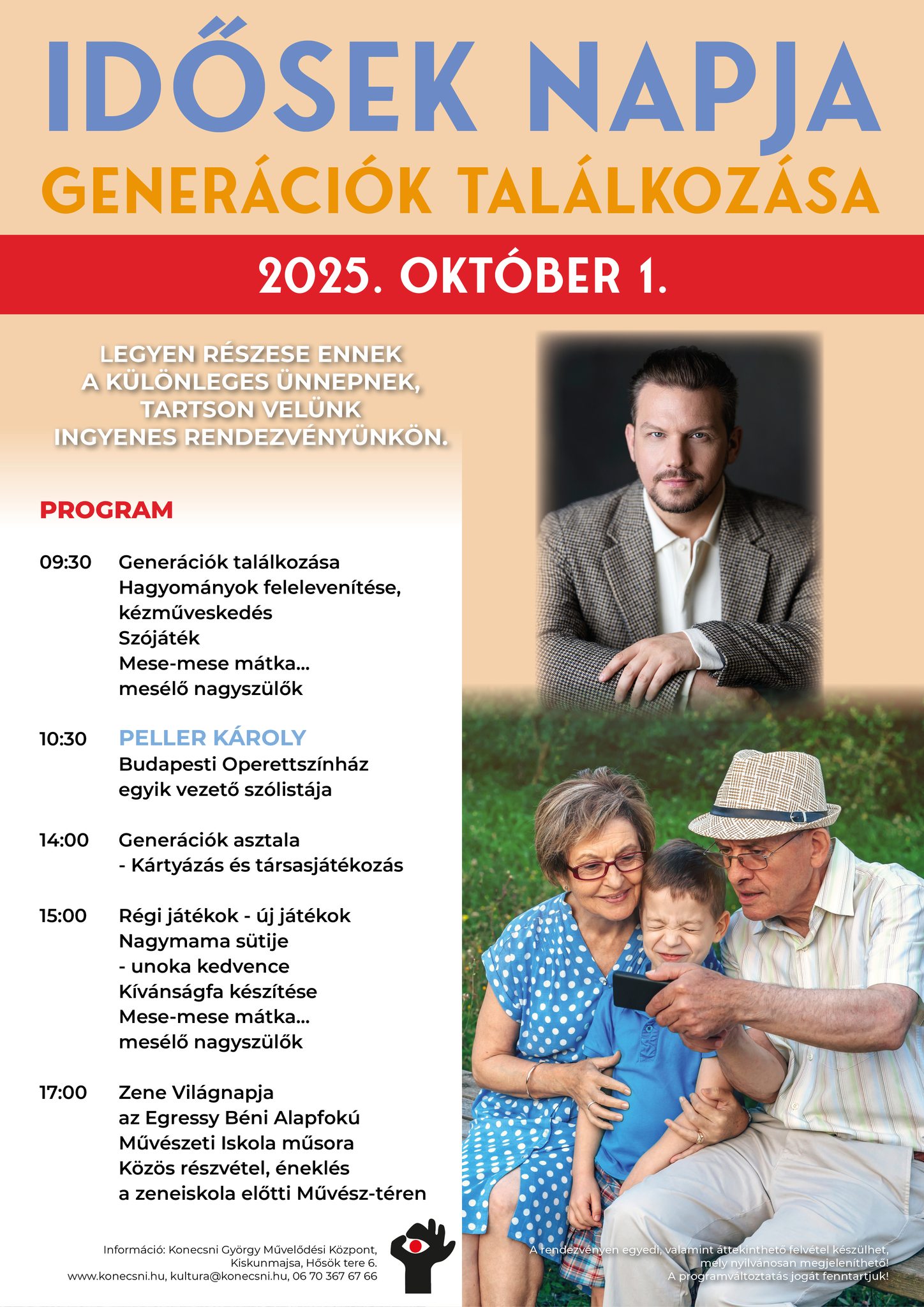 Ingyenes rendezvény, amelyre szeretettel várjuk a szépkorúakat és a fiatalabbakat egyaránt. Az egész napos program során