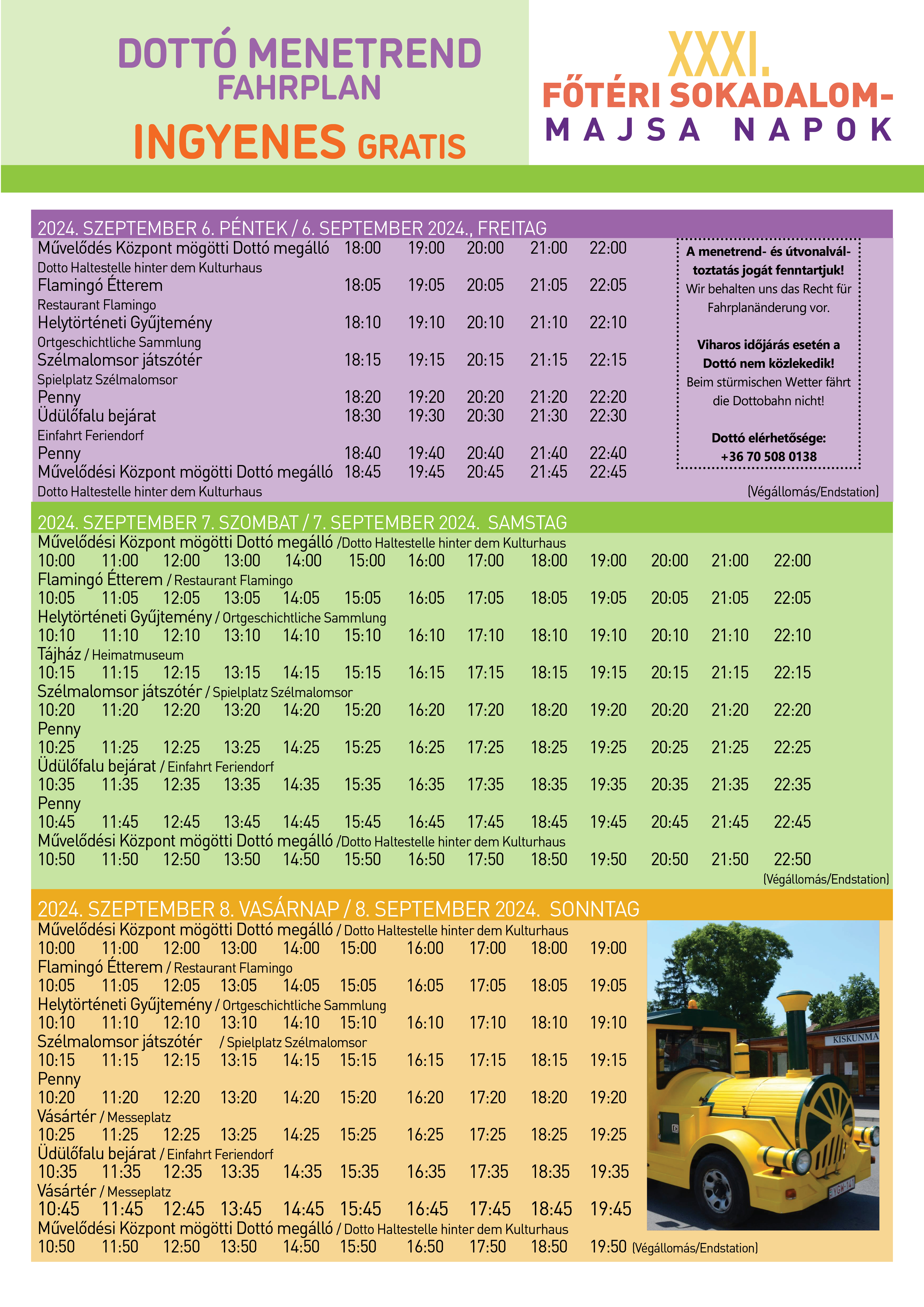XXXI. Főtéri Sokadalom - Majsa Napok Dottó menetrend